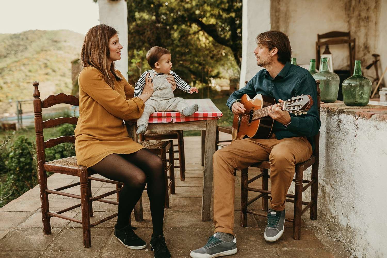 1. Nos conocemos, os hago unas preguntas con un café, y elegimos una actividad que os guste hacer. Por ejemplo, irnos al campo a disfrutar de la casa en la sierra. Y nos llevamos la guitarra. (Este ejemplo de las fotos surgió así. Aunque en este caso, a ellos les había contactado «a las bravas» mucho tiempo antes durante un concierto de The New Raemon. Se quedarían flipando ante el abordaje. Tiempo después, usaron la tarjeta que les di y me contactaron para hacer finalmente unas fotos. Historión!)